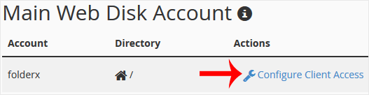 3. Under Main Web Disk Account, click on Configure Client Access.