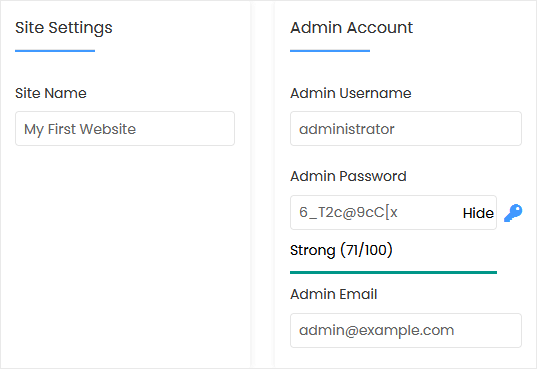 - Admin Password: Use a strong password.